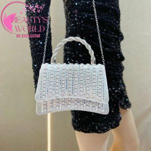 Elegant Design: The clutch features a sleek silhouette embellished with sparkling Artificial Stone, offering a luxurious appearance suitable for parties, weddings, and formal events.