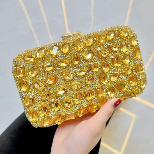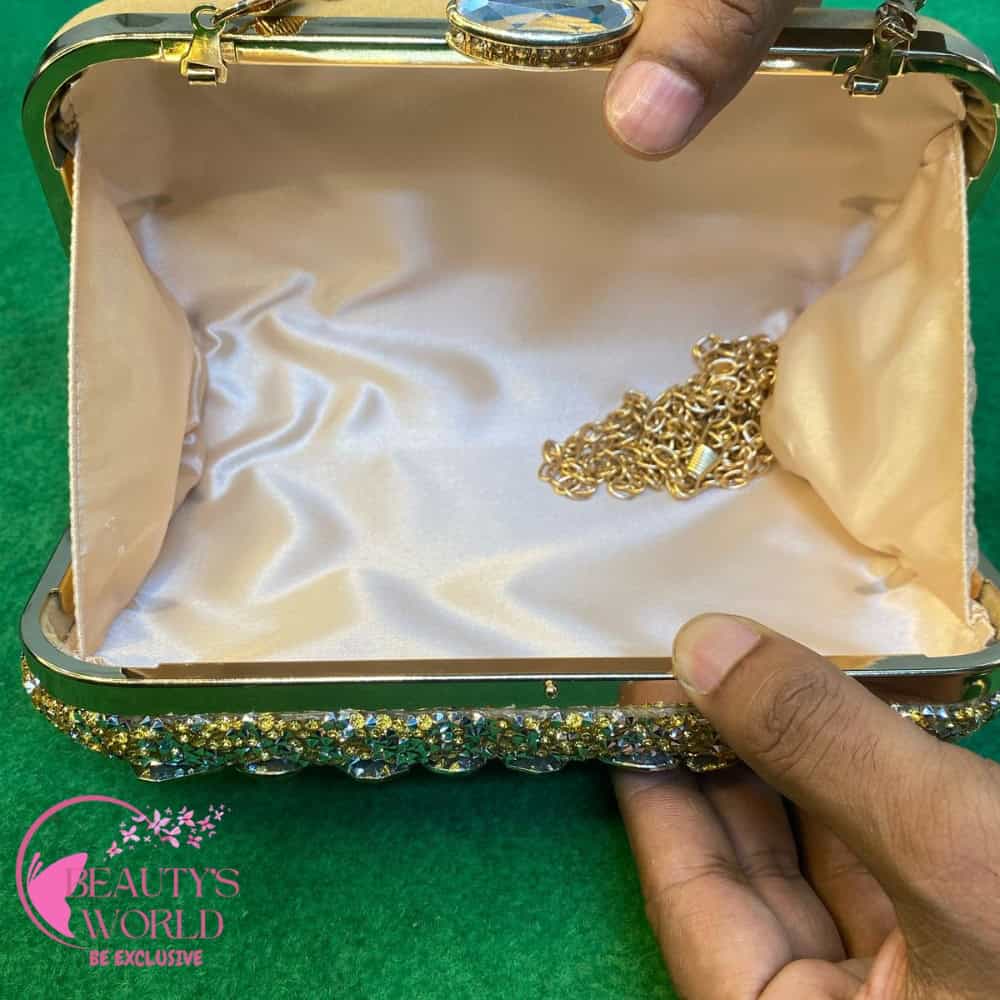 The Square Shape full diamond shiny Party Clutch is a luxurious accessory designed to elevate your evening ensemble. Crafted with precision, this bag features a square silhouette adorned with shimmering Artificial Stone, offering a dazzling appearance suitable for various occasions.